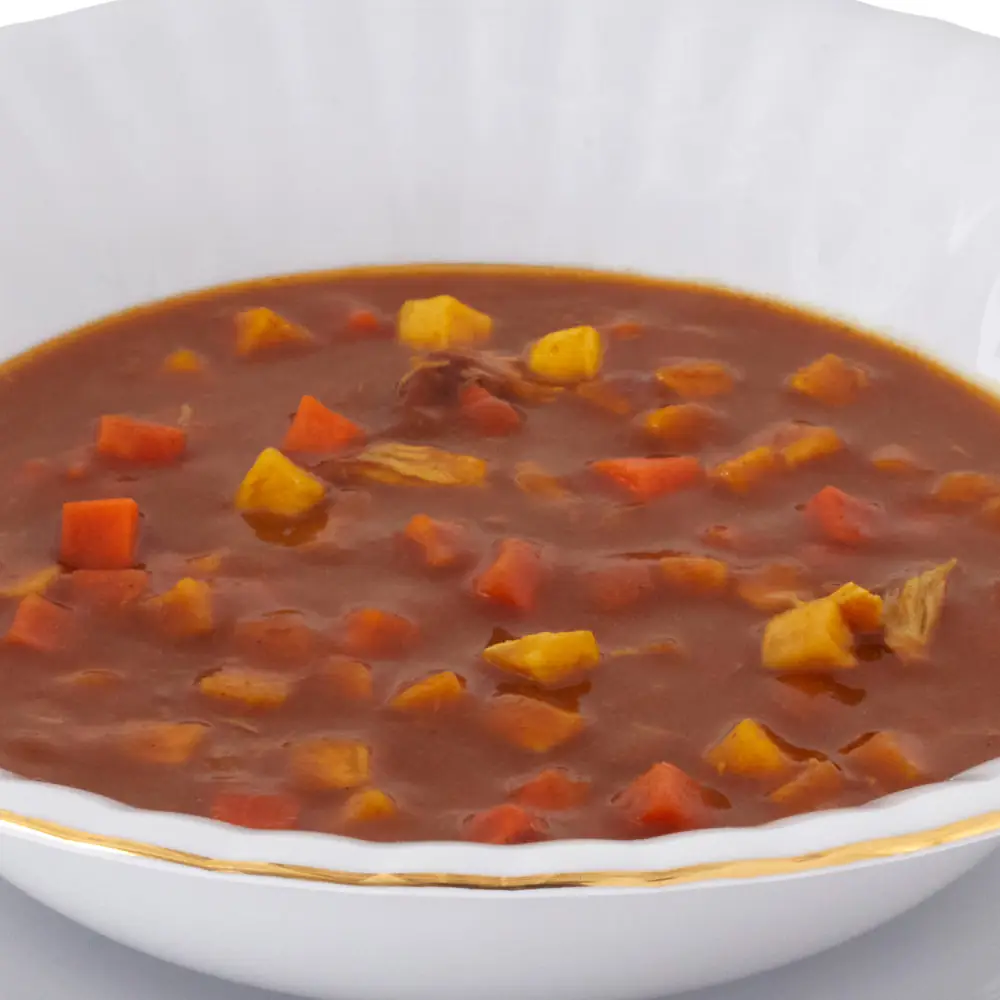 色とりどりの野菜を煮込んだ、コクのあるコンソメ味のベジタブルシチュー。